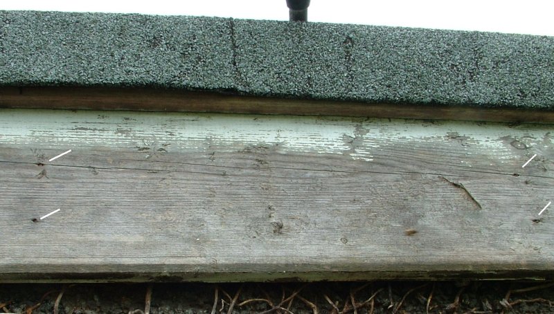 Below (12.24): The colony's nest was immediately behind the fascia. The entrance was to the right. There is evidence of older comb attachments to the top of the cavity. New comb had been built on it this season. The nest may be much older than three years judging by the hardness of the comb in places.