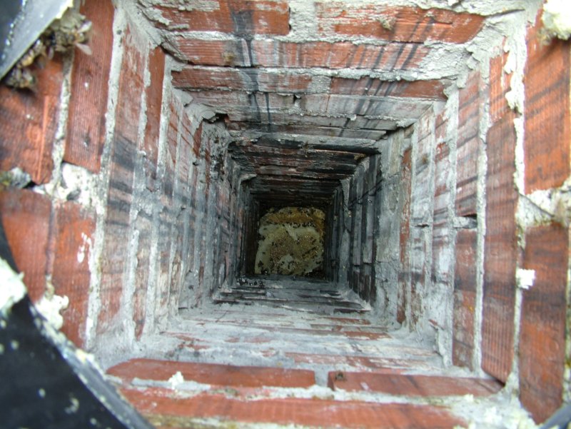After any work on chimney stacks, disused flues should be bee-proofed either in the way illustrated in the photo immediately above, or by fitting a ventilated cap with a built-in insect mesh, for example C-Cap.